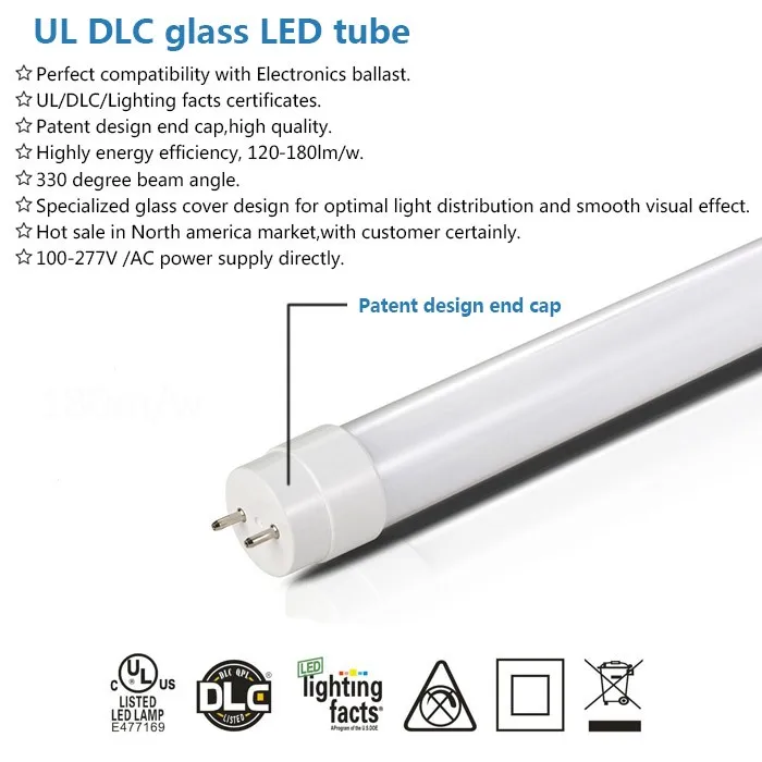 Advantages of 150lm/w 12w glass led tube UL DLC listed led tube